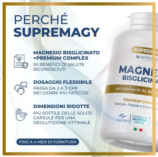 Se cerchi un integratore di magnesio realmente efficace, ben tollerato e adatto a tutte le esigenze, il Magnesio Bisglicinato SUPREMAGY è la soluzione perfetta.